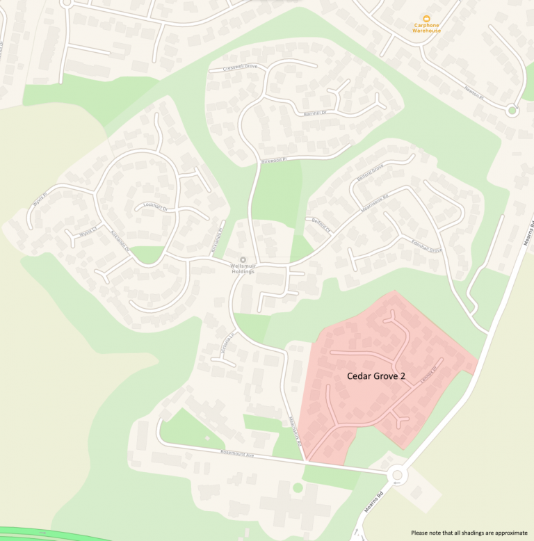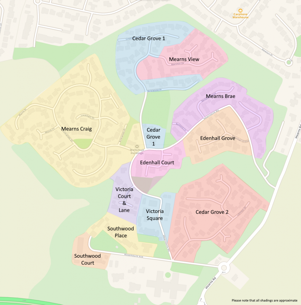Mearnskirk Estate is split into 11 distinct zones. Click on a zone below for more information: